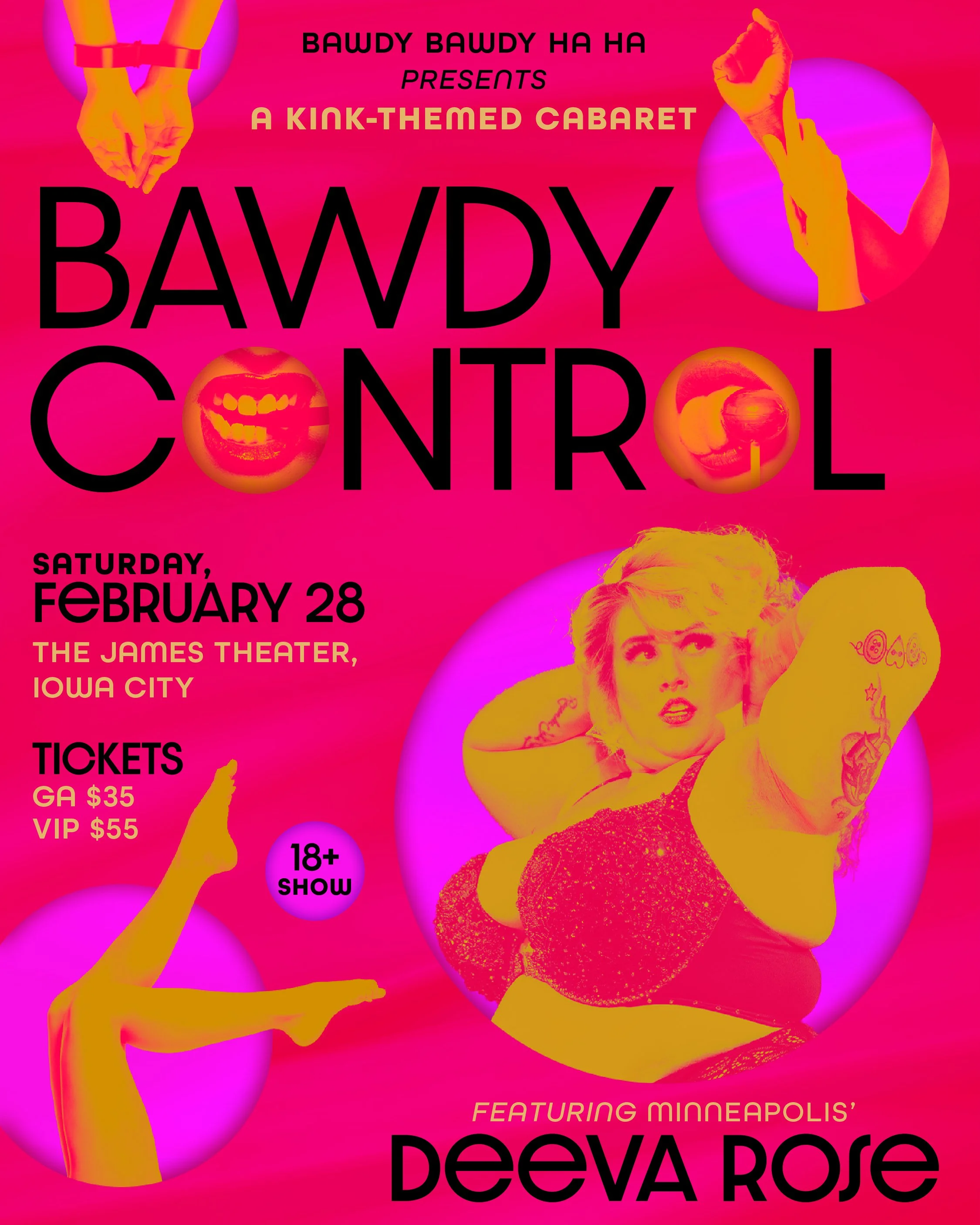 Join Bawdy Bawdy Ha Ha for our first ever kink-themed show, headlined by the Best Chest in the Midwest, Deeva Rose from Minneapolis! We're exploring every inch of what "fetish" has to offer, from the daring and dominating to the slinky and submissive... and plenty of ridiculous Bawdy twists. Come experience the new meaning of BDSM (Bawdy Delivers Show Magic? Bawdy Drives Showgoers Mad? Bawdy's Delicious Succulent Meat?). Our host Varla special-requested this theme, so only the gods of revelry know what's going to happen—Dionysus, help us all!