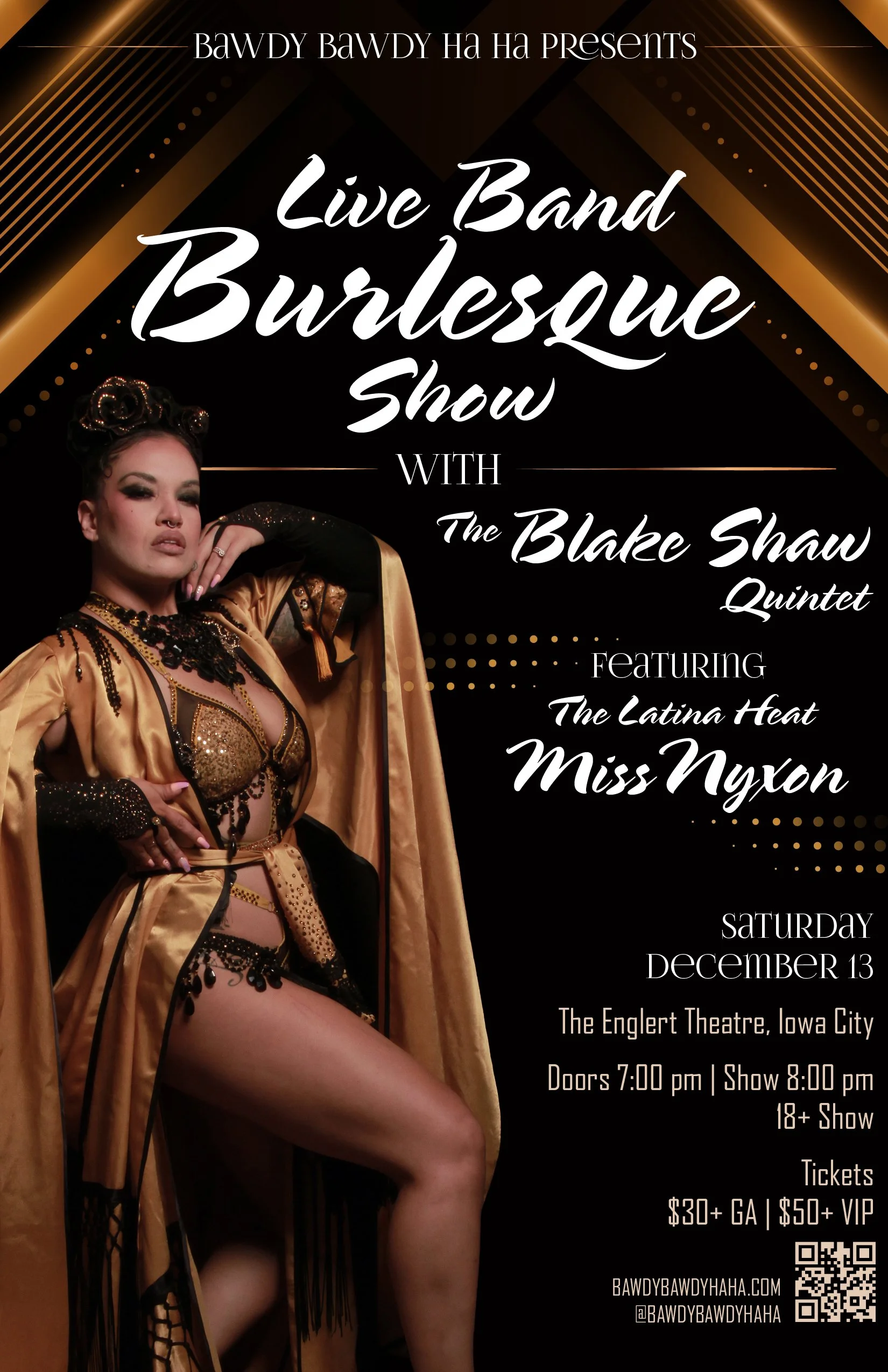 This show also features Hazel Noire from Minneapolis, Rosemary Maybe and Zahradka Tonic from Chicago, Allura Fette from St. Louis, Les Femmes des Flammes from Wisconsin, and your favorite Bawdy Babes Matt Adore, Catty Wompass, Anita Sativa, Kiki Demure, Nova Foxglove, a brand-new big Bawdy group number, and MANY new Bawdy big stage debuts: Peach Teaze, Bee Dazzle, Cinder Bella, Dollie Magdalene, and Bruce Queenstein.